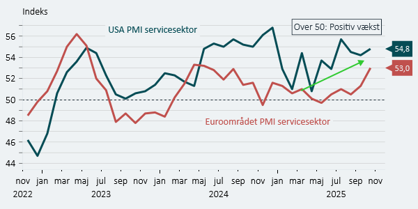 - Trods visse dårlige økonomiske indikatorer skal man ikke ignorere dem, der viser, at det faktisk ikke står så skidt til. De seneste PMI-vækstindikatorer for USA og Europa tyder på stigende, ikke aftagende, vækstmomentum.