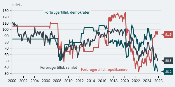 Selvom amerikansk økonomi ikke vokser lige så hurtigt som tidligere, er der trods alt ikke mange andre variable, der tilsiger, at det står værre til end under finanskrisen. Det er da også tydeligt, at tallet er stærkt påvirket af, at demokraterne er meget pessimistiske.