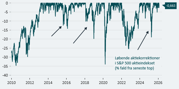 Der har i finansmarkederne været meget fokus på den såkaldte ”FED-put”, dvs. at FED vil justere pengepolitikken, når aktiemarkederne falder for meget. Udfordringen for en trendafhængig FED-chef som Warsh er, at der også er aktiekorrektioner i gode aktieår, og at det ikke nødvendigvis er et signal om, at konjunkturerne er ved at vende.