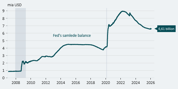 Teoretisk er det korrekt, da FED kan påvirke de bredere finansielle vilkår på begge måder, men med den nuværende regulering vil det være svært uden en stor FED-balance. Med den nuværende regulering har vi tidligere oplevet – senest i 4. kvartal 2025 – at en for stram FED-likviditet kan påvirke markederne negativt. Det er bl.a. derfor, at FED nu er stoppet med at reducere balancen og i stedet for fører ”QE-light” ved at købe amerikanske skatkammerbeviser.